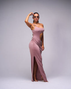 Long dress with straps on one side.